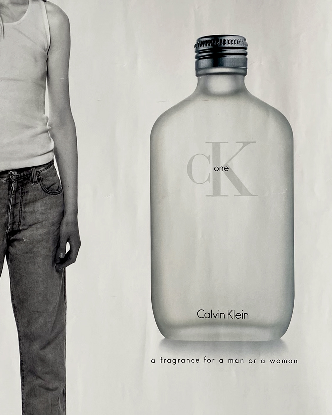 1995年に印刷され、ケイトモスを一躍トップモデルに飛躍させ、日本でも一世を風靡した香水「CK ONE」のプロモーションポスター。