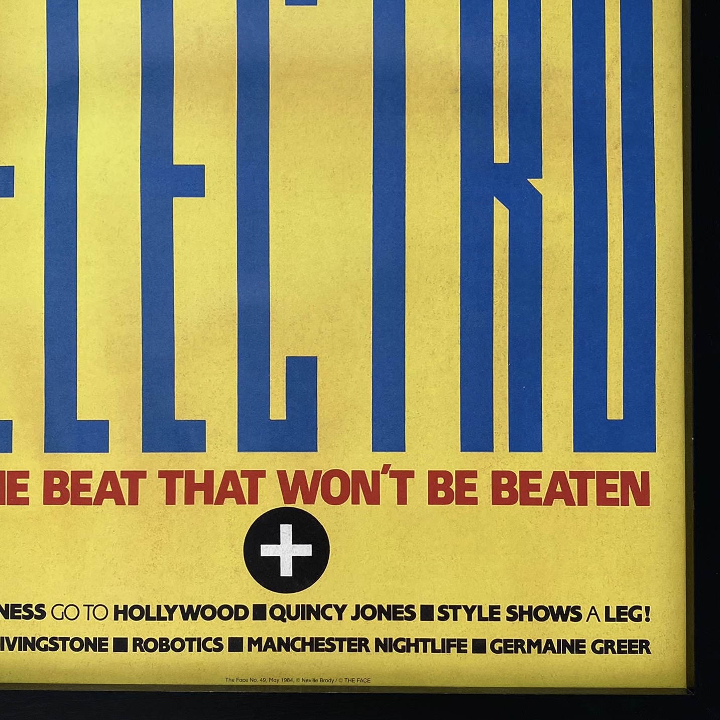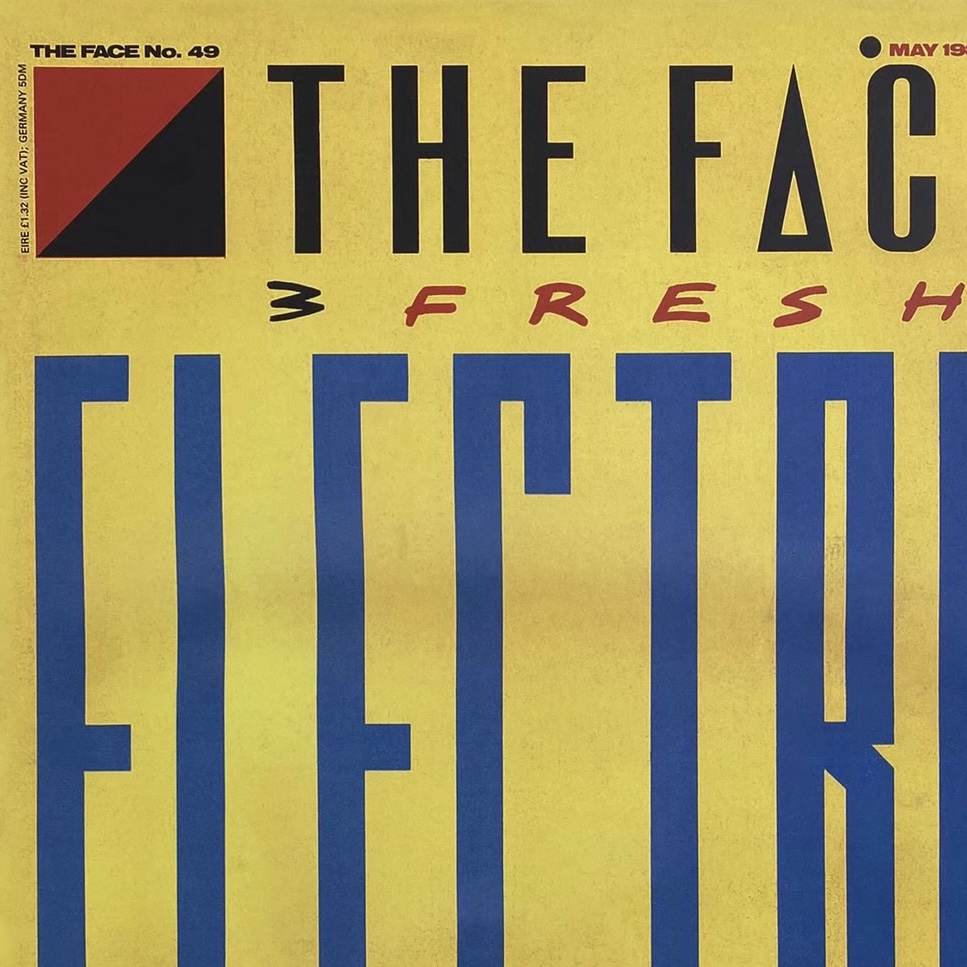 1984年5月に発行されたマガジンの表紙。エレクトロビートについての特集が掲載されている。 The Faceは、1980年から2004年まで発行され、2019年にリニューアルされた英国の音楽、ファッション、文化の月刊誌。
